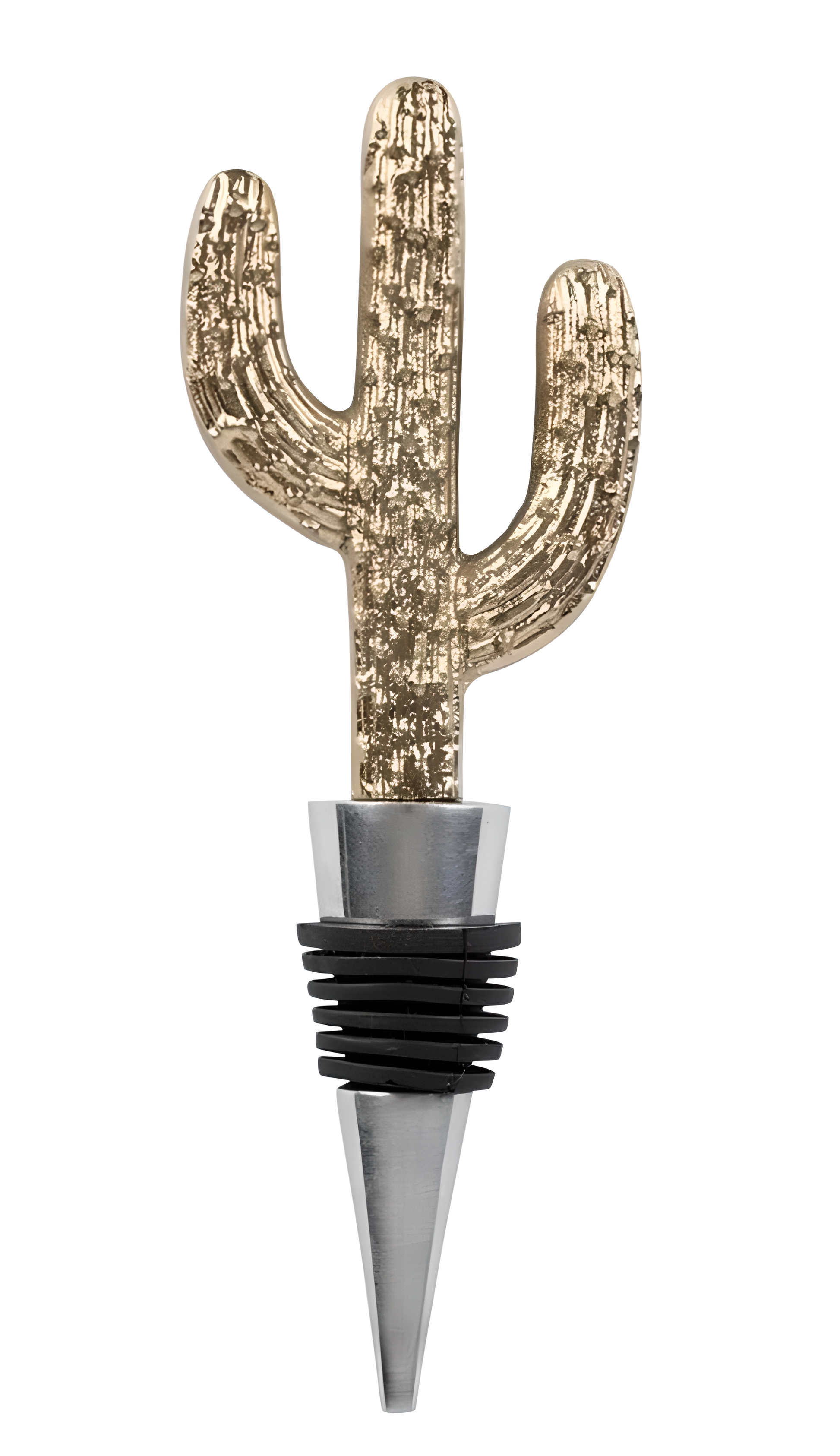 Faites entrer le soleil et l’exotisme sur votre table avec ce bouchon de bouteille au design cactus doré.