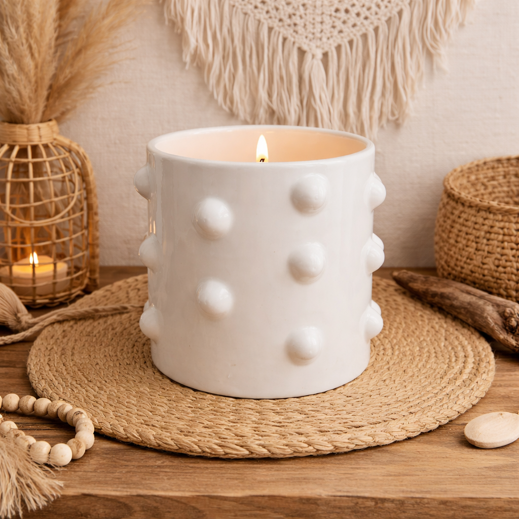 Bougie blanche à boules – Céramique artisanale