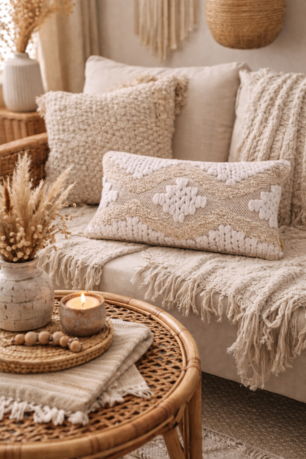 Idéal sur un canapé, un fauteuil ou posé au sol, ce coussin s’adapte aussi bien à l’intérieur qu’à l’extérieur. Mélangez les tailles, motifs et textures pour une déco encore plus vivante et personnalisée, à l’image de l’esprit boho chic.