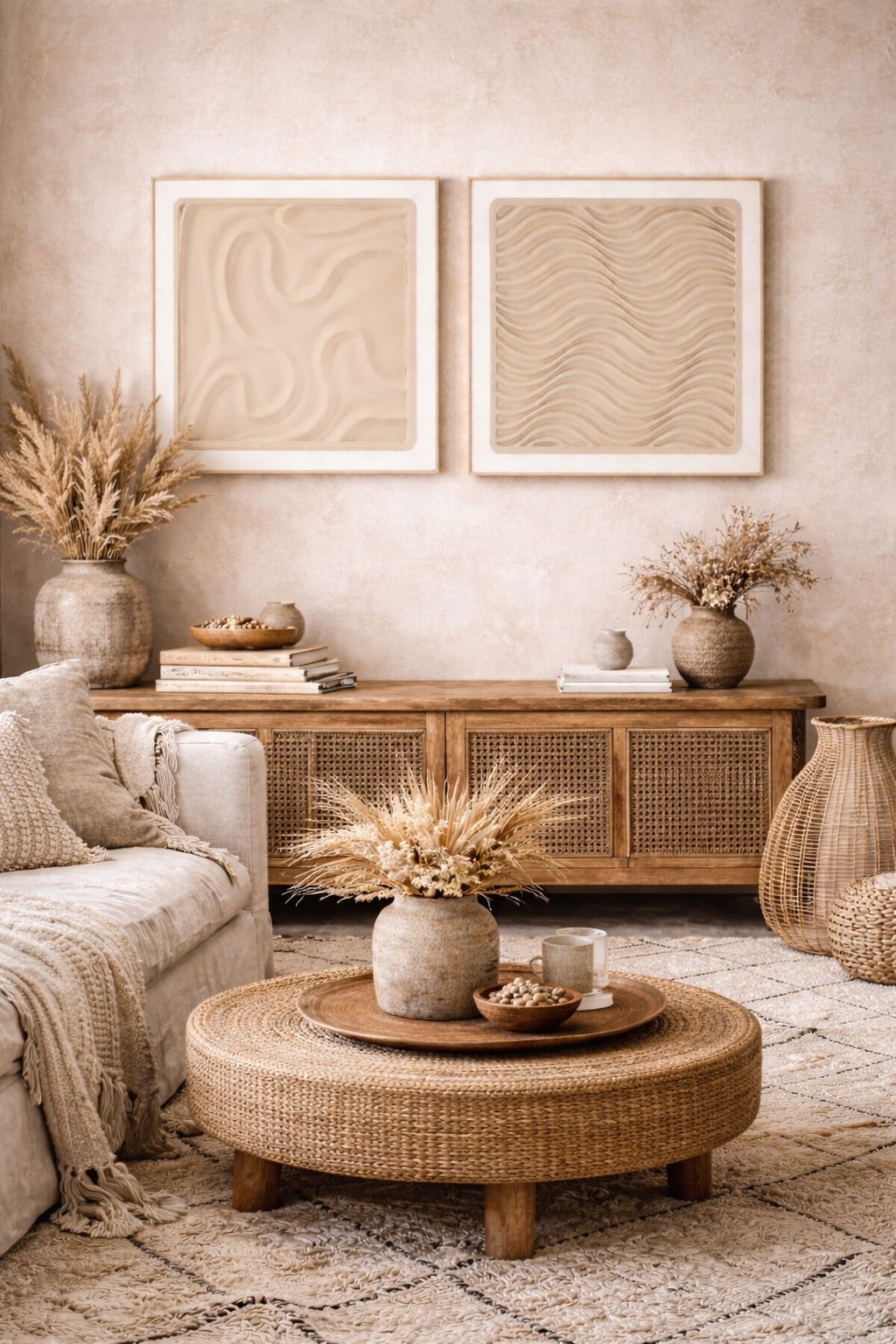 Leur relief 3D beige capte la lumière avec subtilité et apporte une touche artistique et apaisante.