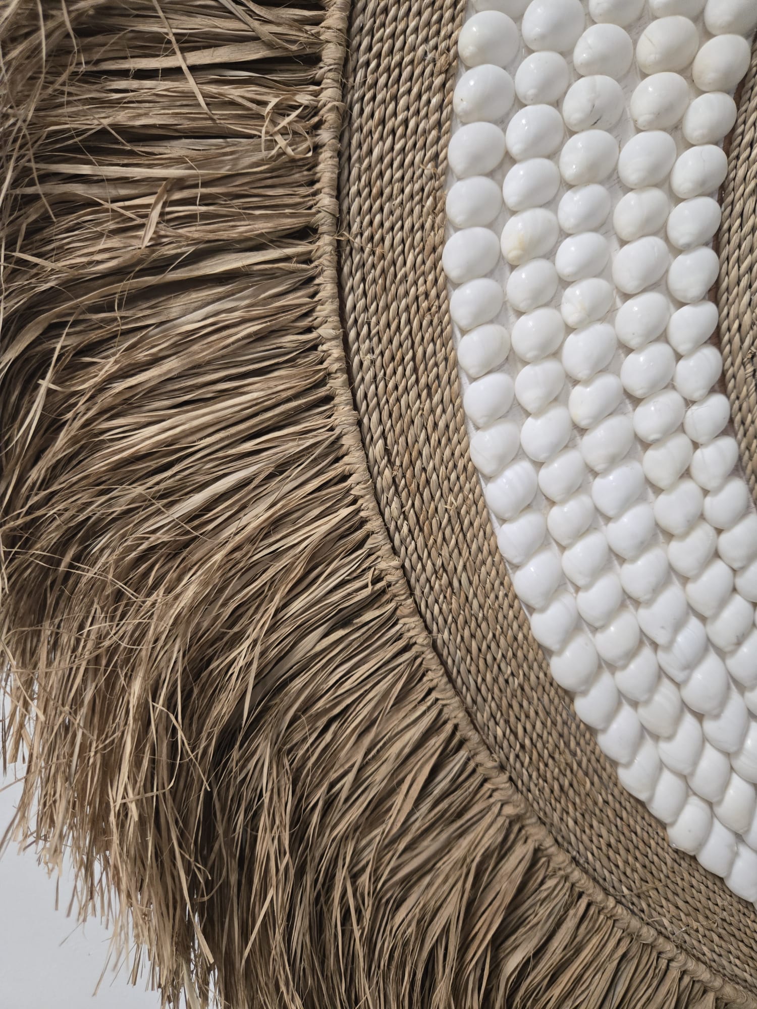 Grand Miroir Bohème 80 cm - Raphia Naturel et Coquillages Blancs