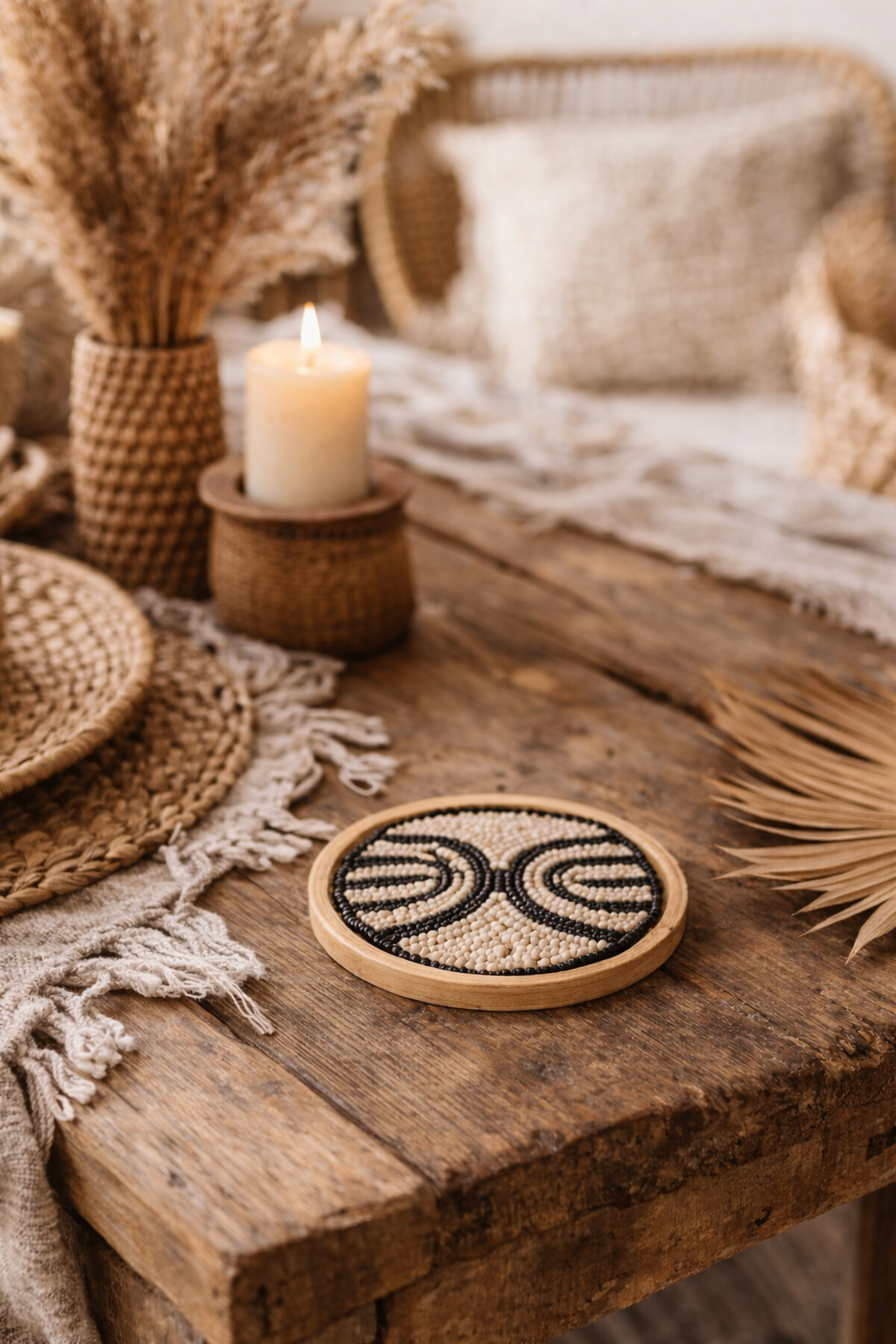 Sous-verre en perles & bambou – Fait main