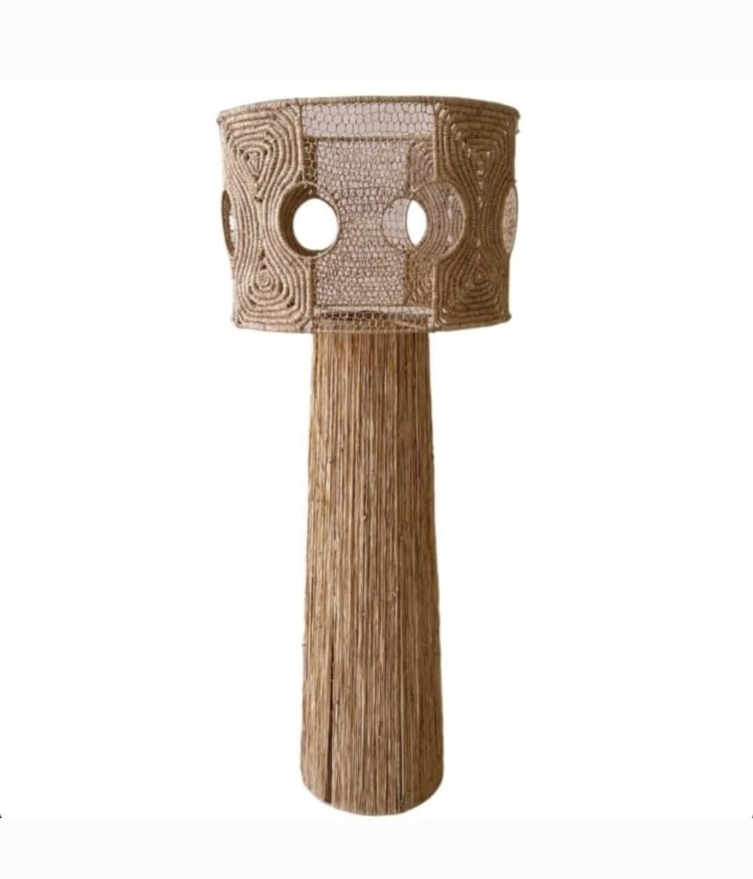 Montée sur un pied épuré et élégant, cette lampe s'intègre facilement dans une déco bohème, méditerranéenne ou contemporaine. Chaque pièce est unique, mettant en valeur l’artisanat et la beauté des matériaux naturels.