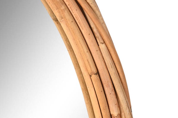 Ce miroir ovale encadré de rotin naturel apporte charme et douceur à votre décoration. Parfait dans une entrée, une chambre ou au-dessus d’une console, il agrandit l’espace avec style.